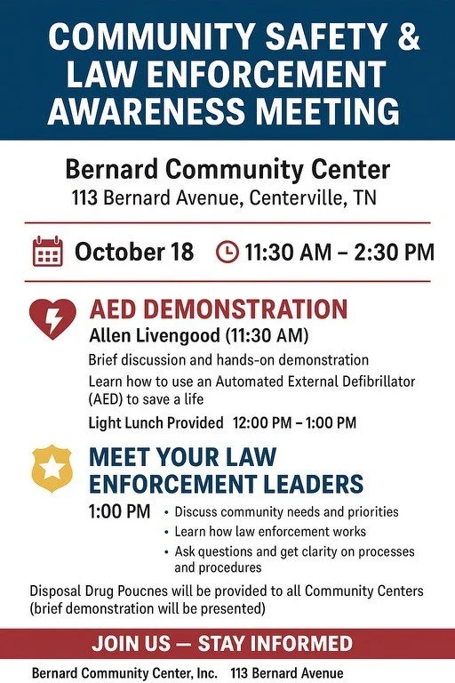 Join the Bernard Community Center for an informative and engaging meeting focused on community safety and law enforcement awareness.